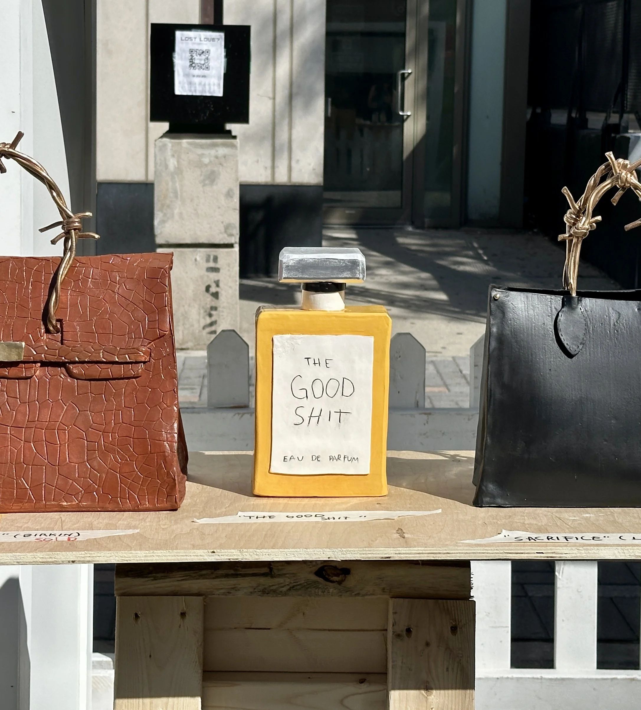 While working I found myself subconsciously making these mundane everyday objects and I had no idea why. I couldn’t stop. It wasn’t therapeutic, it was spiritual. It finally hit me that for the last year I had spent so much time and energy chasing these big shiny goals in life that I started to devalue all the small things that make it up. All of these objects help shape our lives. They’re drinks with friends, the things we consume, the clothes that we wear and accessories we pair with them. I was tired of feeling like I was rushing through life trying to sell things off for cheap. I ended up with 17 pieces and I created these sculptures and had a “Yard Sale”. Somewhere you might sell things in a hurry but put them on pedestals with the goal being to reintroduce them and reconsider what we’re prioritizing in life.