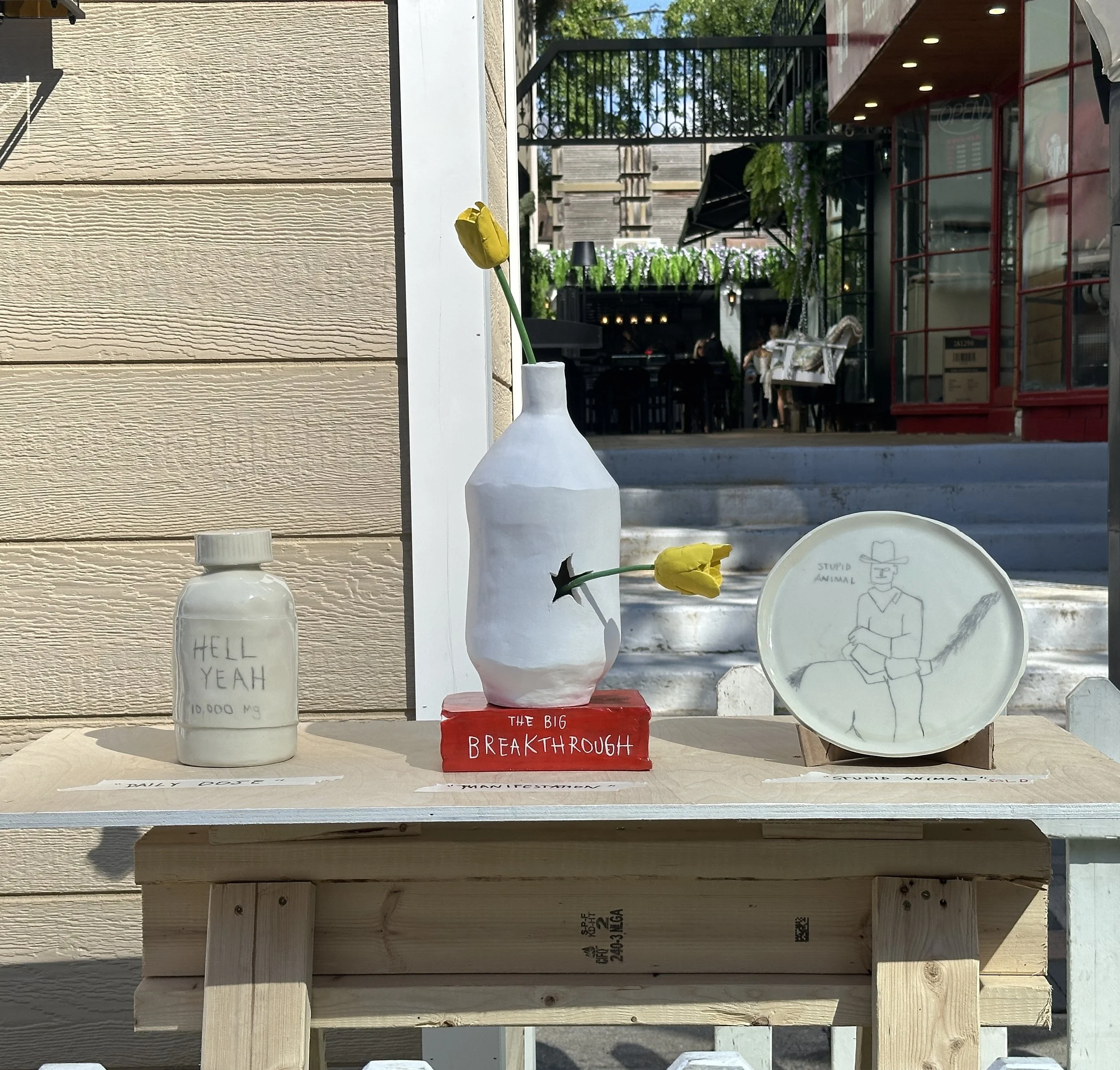 “The Yard Sale” was an installation created from a 30 day residency at the Park Hyatt in Toronto. The goal seemed simple. Spend a month sculpting and showcase the results at “Yorkville Murals”, an event put on by Taglialatella Gallery. The reality was not so simple considering about a month prior to leaving I had never touched clay let alone fire anything in a kiln (don’t tell the gallery).